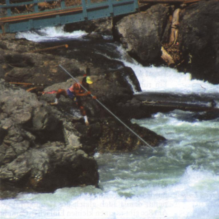 eine ideale Stelle, an der lokale Indianern mit traditionellen Mitteln Lachse fangen.