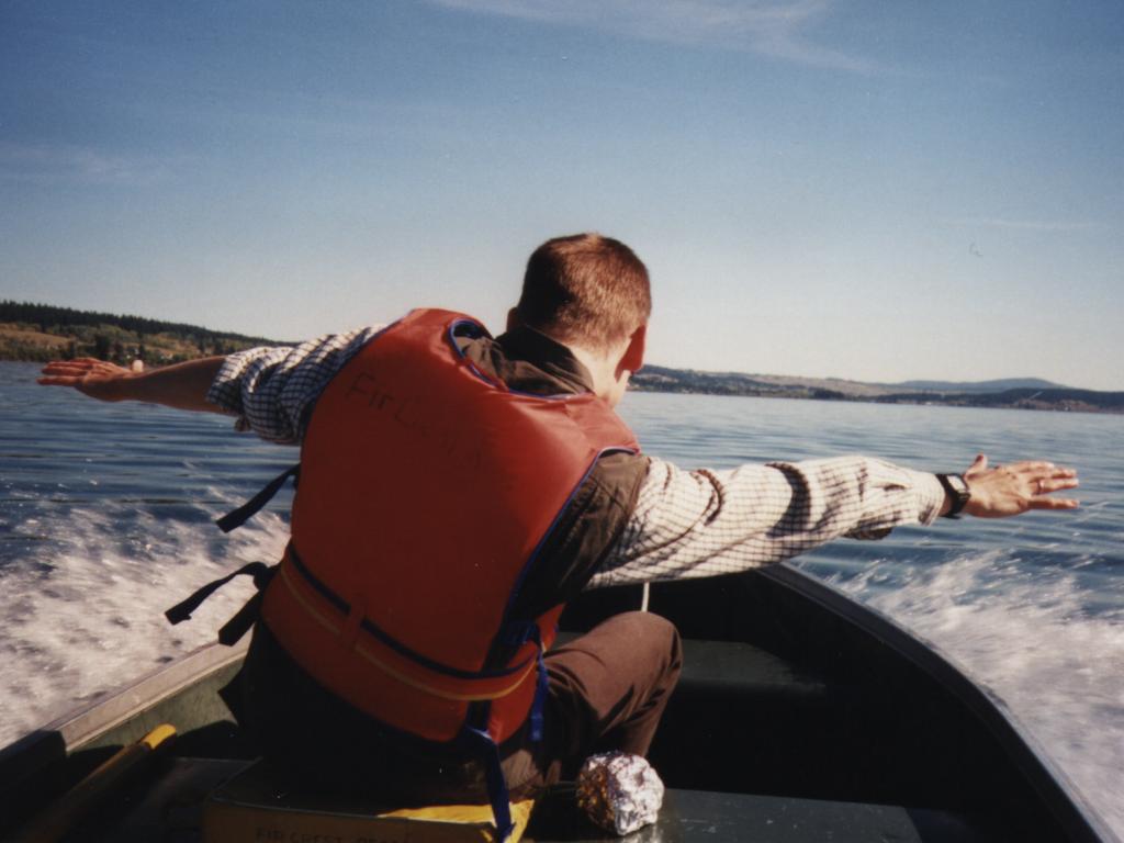 Außenbordmotor, der aber recht kraftvoll ist. Damit fahren wir schön gemütlich den Lac La