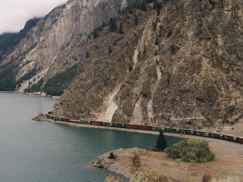 Derselbe Zug schlängelt sich am Seton Lake entlang. Wenn man genau hinsieht, kann man erkennen, dass