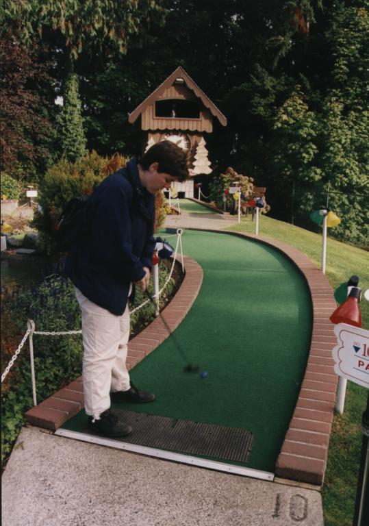 eine schöne Minigolfbahn, die wir schließlich auch finden. Tatsächlich sind es zwei